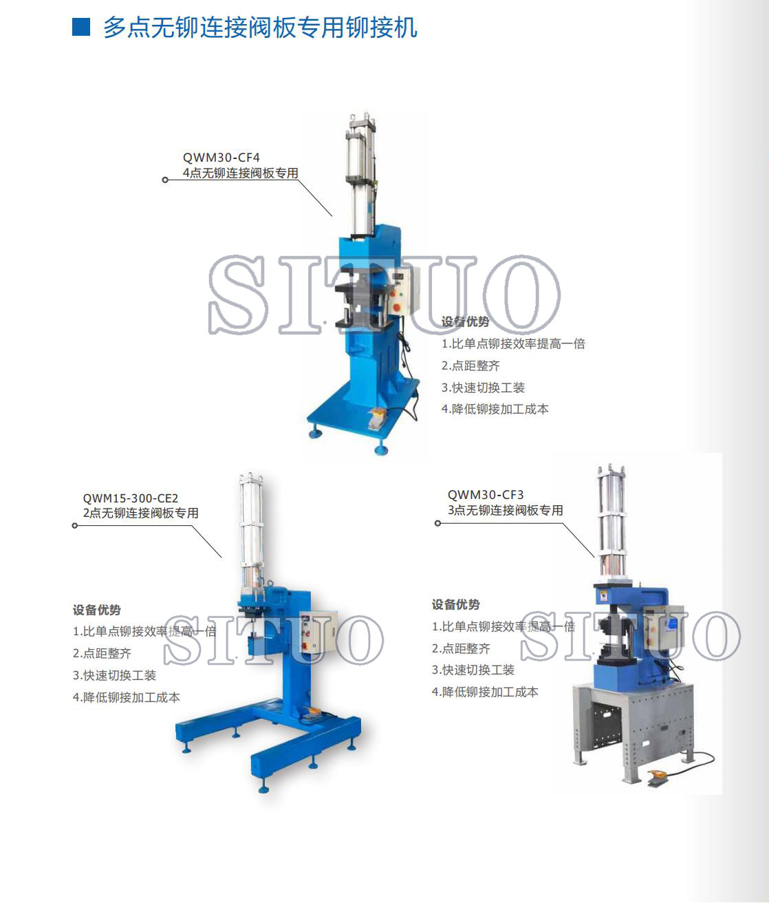 無錫思拓風(fēng)閥閥板系列鉚接機,還有這么多,2點,3點,4點風(fēng)閥閥板鉚接機,專業(yè)的就是不一樣。